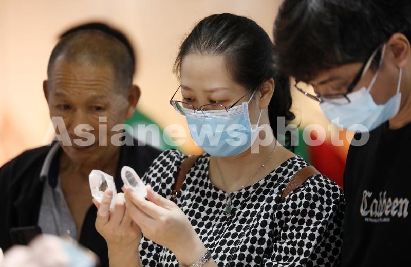 图片说明:5月19日,观众在第十一届中国(湖南)国际矿物宝石博览会上选购商品。