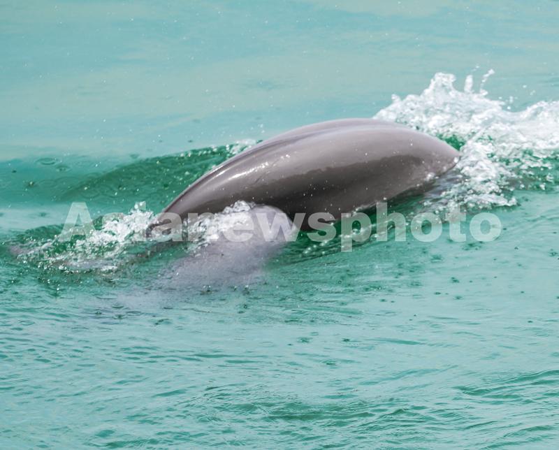 2023年5月20日,江豚在湖北省宜昌市葛洲坝下游水域逐浪嬉戏。