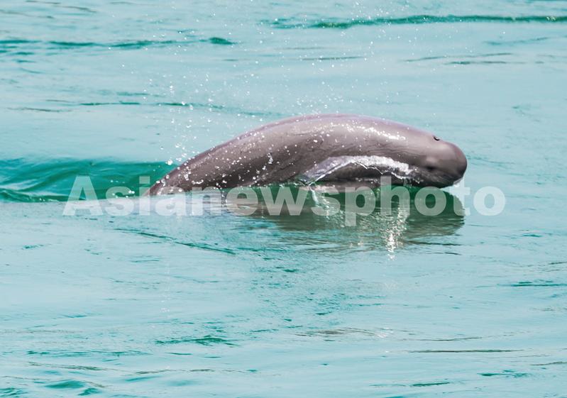 2023年5月20日,江豚在湖北省宜昌市葛洲坝下游水域逐浪嬉戏。
