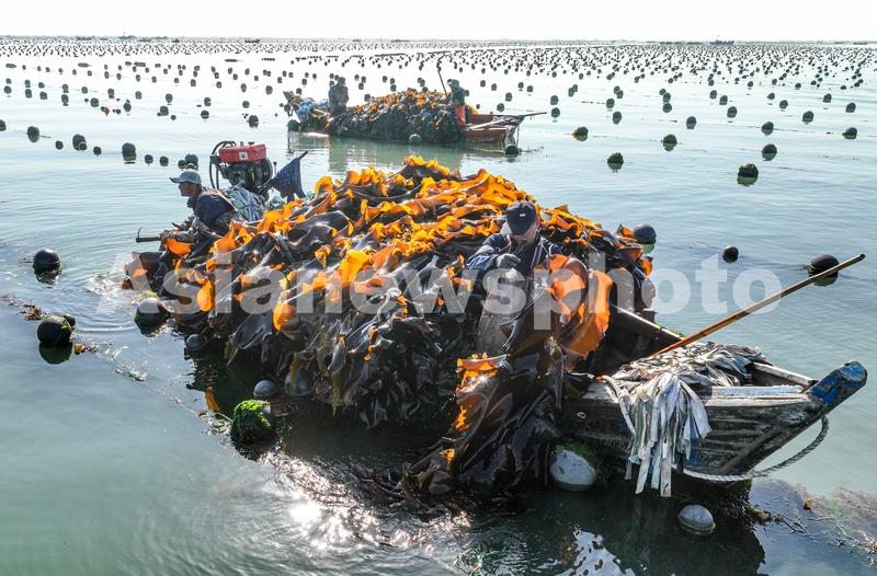 山东荣成:规模化养殖海带迎来大丰收 查看组图