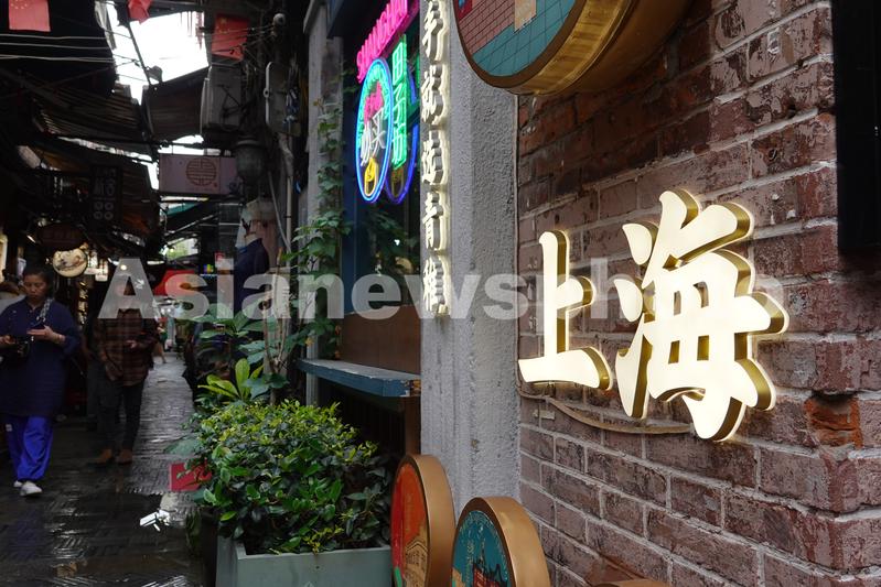 图片说明:2023年5月22日,当日中午,小雨天气里的上海黄浦区“天子坊”内,仍然有不少中外游客正在游览逛街。