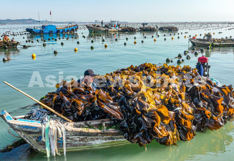 山东荣成:规模化养殖海带迎来大丰收 查看组图