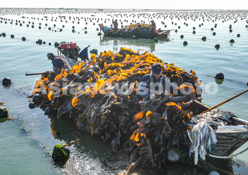 山东荣成:规模化养殖海带迎来大丰收 查看组图