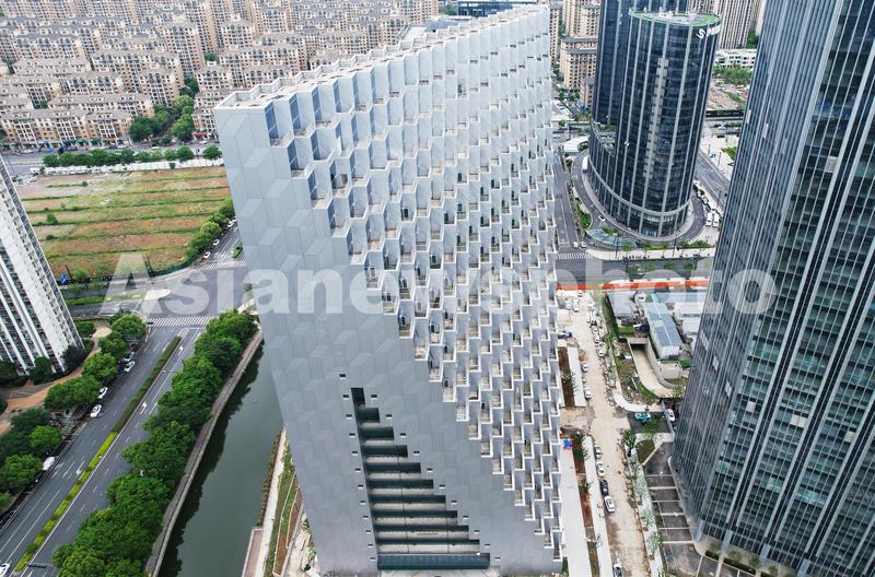 2023年5月24日,从空中俯瞰外形酷似“金字塔”的“杭州光棱”。