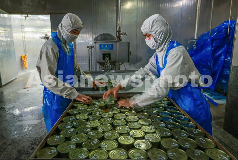 图片说明:2023年5月25日,在山东省荣成市石岛管理区海洋预制菜产业园一家金枪鱼加工企业的车间内,工人们在生产线上忙碌着,赶制出口国外的金枪鱼罐头订单。