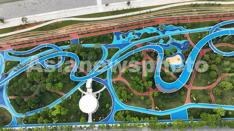 2023年5月25日拍摄的长江国家文化公园九江区段岸线美景。日前,自长江国家文化公园(江西九江段)初步建成开放后,将九江长江公铁两用大桥、琵琶亭、锁江楼、浔阳楼等著名景点连点成片,既能打卡名胜古迹又能散步游玩,每天都吸引了大批游客前来游玩。据悉,该项目以保护传承弘扬长江文化为核心,按照“千年文化、串珠成链,创意重现”的方式,对滨江路沿线共11公里岸线进行升级改造,打造长江最美岸线。