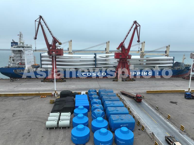 近年来,江苏省连云港市大力发展风电设备制造产业,形成了从叶片、塔筒、电机控制系统到机组的风电装备研发和制造产业链,一批又一批风电设备从连云港港装船出口到海外。