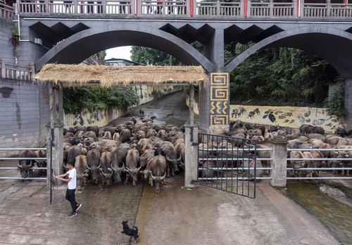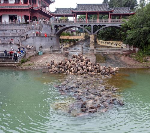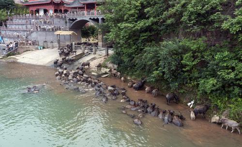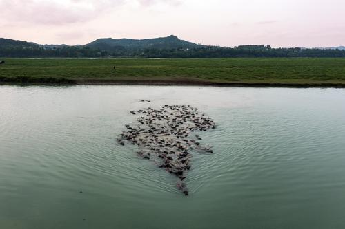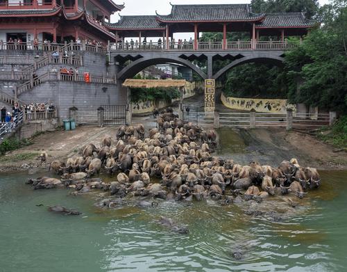 四川蓬安现“百牛渡江”原生态奇观 查看组图