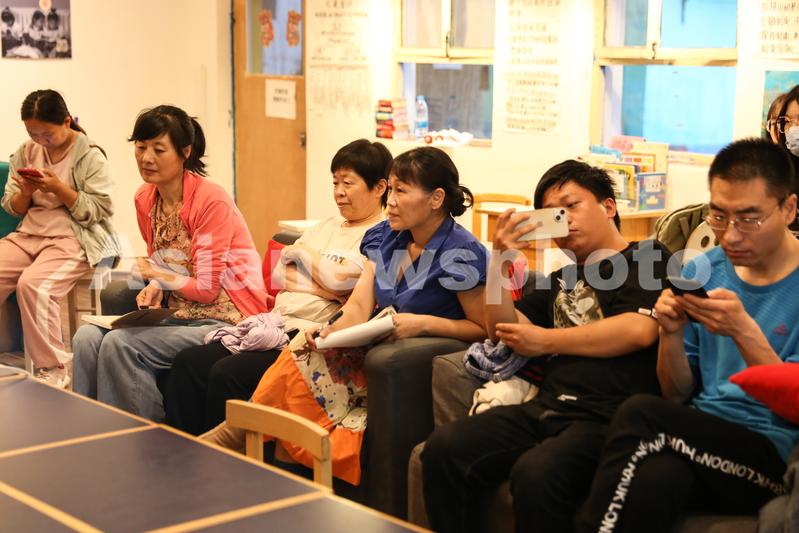 “打工诗人”小海(右二)、范雨素(右三)等皮村文学小组成员在课堂上。