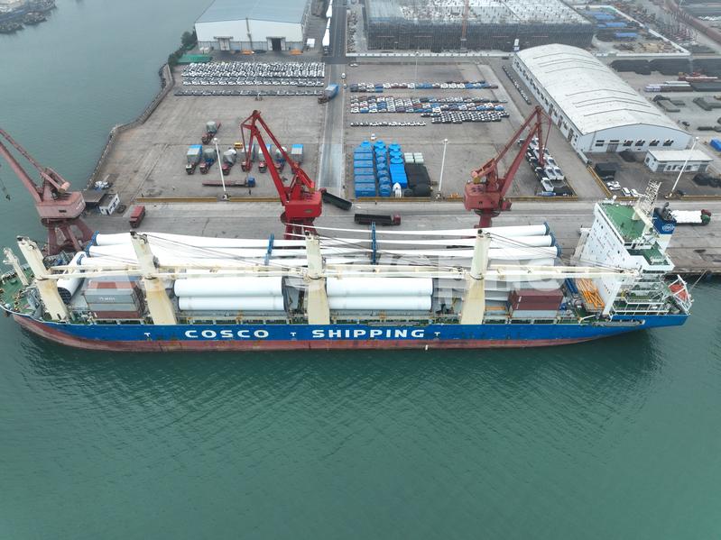近年来,江苏省连云港市大力发展风电设备制造产业,形成了从叶片、塔筒、电机控制系统到机组的风电装备研发和制造产业链,一批又一批风电设备从连云港港装船出口到海外。