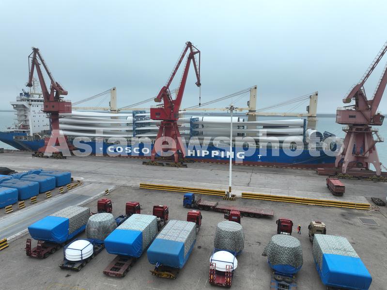 近年来,江苏省连云港市大力发展风电设备制造产业,形成了从叶片、塔筒、电机控制系统到机组的风电装备研发和制造产业链,一批又一批风电设备从连云港港装船出口到海外。