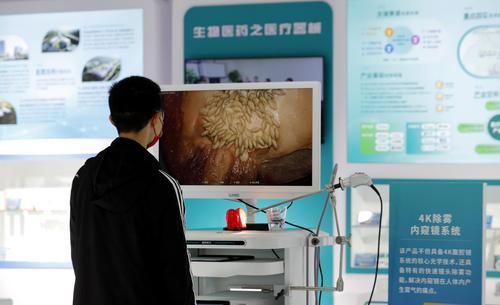 2023年5月30日,观众在2023中关村论坛展览(科博会)参观。