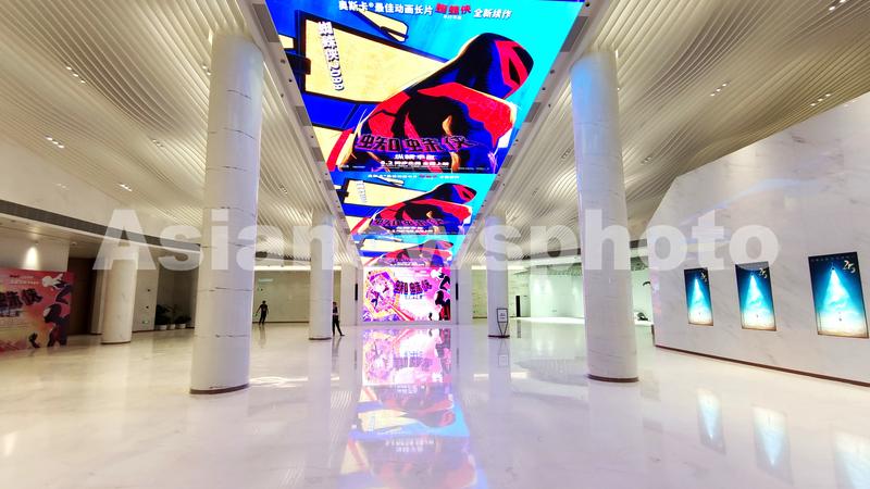 2023年5月31日,上海,上海影城焕新回归,大堂LED天幕拥有裸眼3D视效和沉浸式立体声效,漫威的奥斯卡最佳动画电影续作《蜘蛛侠:纵横宇宙》在这座“光影艺术宫殿”放映为上海电影节热身。