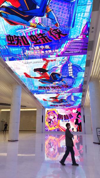 2023年5月31日,上海,上海影城焕新回归,大堂LED天幕拥有裸眼3D视效和沉浸式立体声效,漫威的奥斯卡最佳动画电影续作《蜘蛛侠:纵横宇宙》在这座“光影艺术宫殿”放映为上海电影节热身。