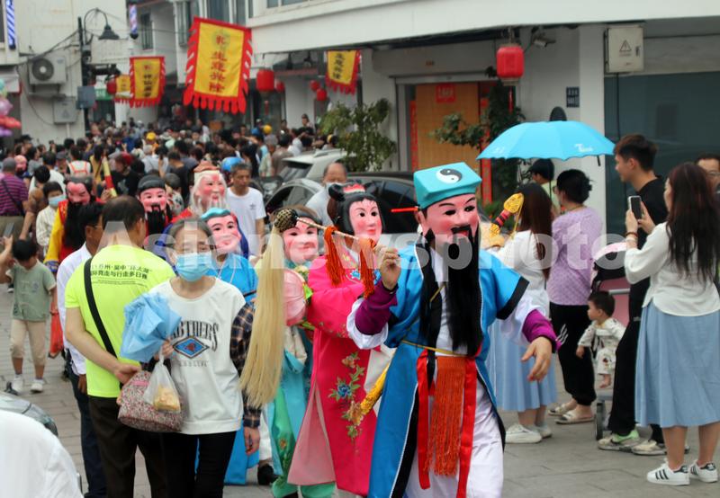 图片说明:2023年6月1日,真人装扮的“神仙”在江苏苏州石路街头巡游表演。