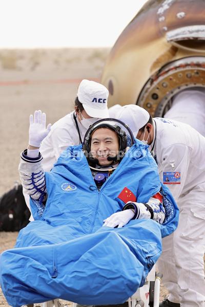 6月4日,在东风着陆场,航天员费俊龙安全顺利出舱。