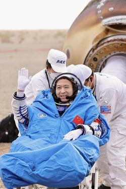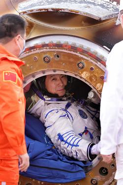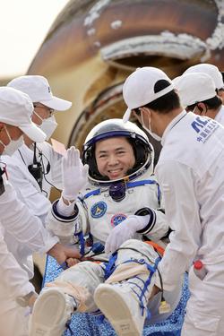 6月4日,在东风着陆场,航天员邓清明安全顺利出舱。