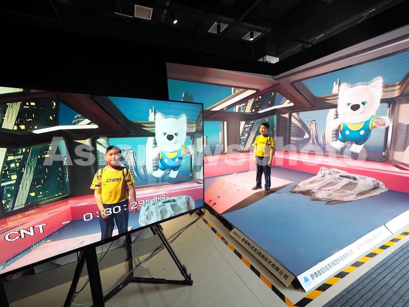 2023年6月4日,北京首钢园“2023中国科幻大会”科幻产业新技术新产品展上,小朋友在体验虚拟动画拍摄。