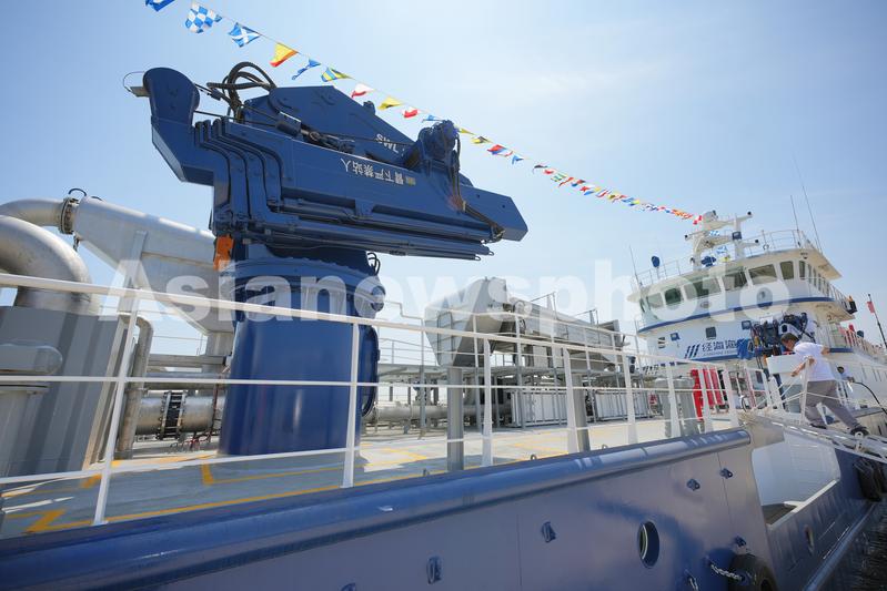 2023年6月5日,在山东烟台八角港,全自动智能化活鱼运输船上的各型设备。