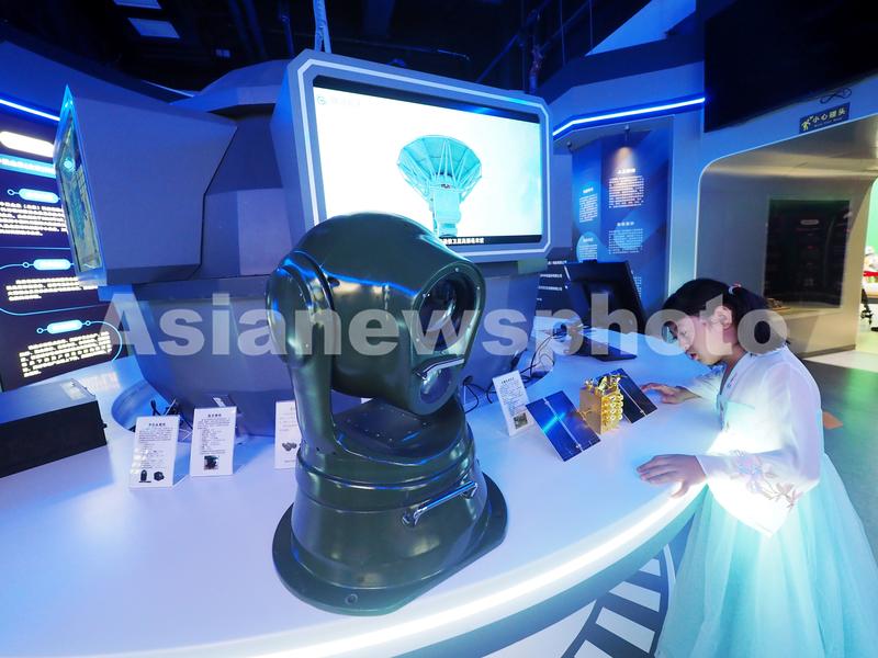 2023年6月4日,北京首钢园“2023中国科幻大会”科幻产业新技术新产品展上,小朋友在参观“计算成像机芯”。