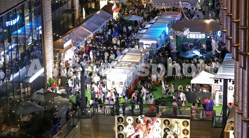 图片说明:2023年6月3日,上海,五五购物节之上海夜生活节在bfc外滩金融中心启动,同步举办的周末枫径夜市人气火爆推动夜经济消费。