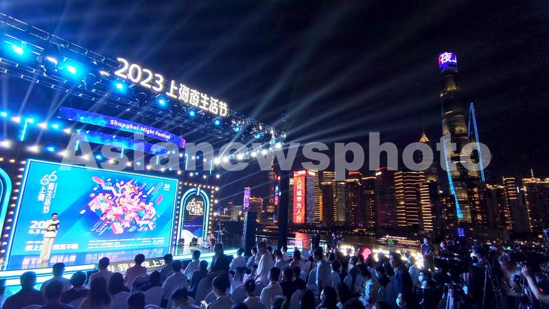 图片说明:2023年6月3日,上海,五五购物节之上海夜生活节在黄浦江畔的bfc外滩金融中心启动,与对岸陆家嘴高楼璀璨灯光遥相呼应。