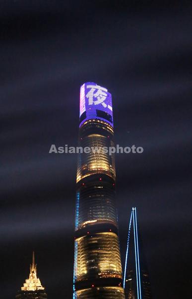 图片说明:2023年6月3日,上海,五五购物节之上海夜生活节在外滩金融中心启动,对岸陆家嘴中国第一高楼上海中心大厦电子屏用灯光秀打出“我爱夜上海”宣传语。