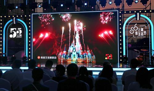 图片说明:2023年6月3日,上海,五五购物节之上海夜生活节在外滩金融中心启动,开幕式上推荐了迪士尼乐园等魔都百大夜经济消费文化地标。