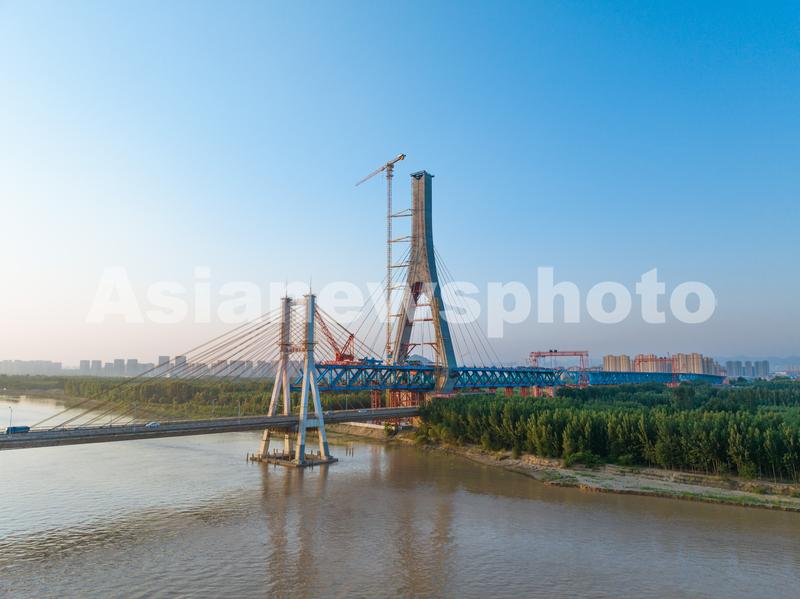 图片说明:2023年6月6日,山东济南黄河公路大桥扩建工程有序推进。