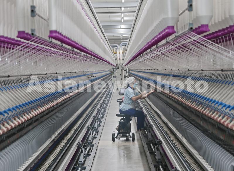 图片说明:2023年6月6日,纺织工人在位于江苏省南通市崇川区的江苏大生智慧纺纱工厂生产车间忙碌。
