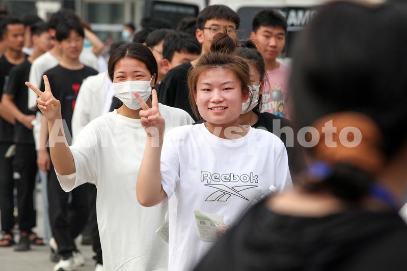 图片说明:6月7日,河南省焦作市博爱县月山中学,高三考生进场前打出“胜利”手势。