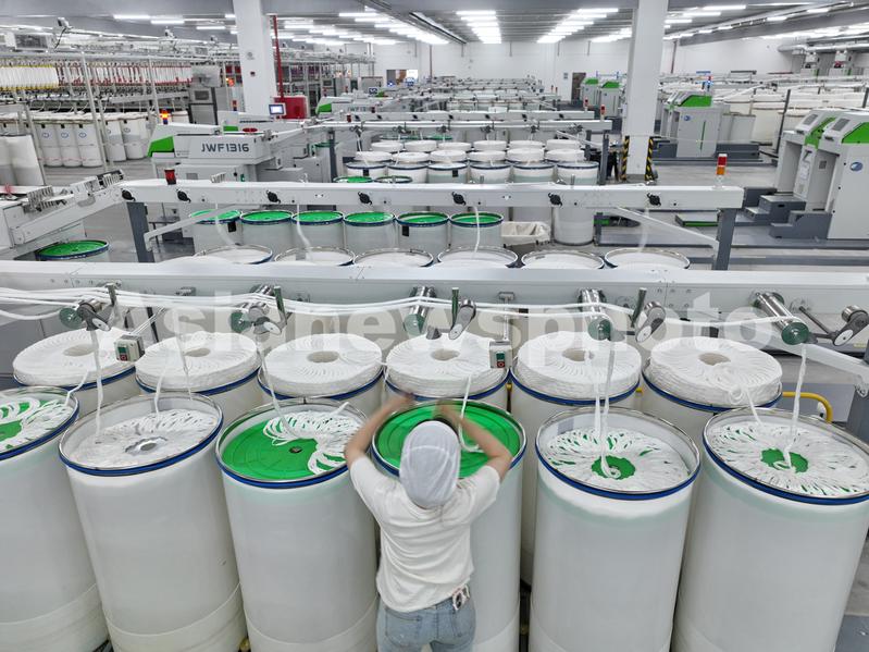 江苏南通:全国首个10万锭智慧纺纱工厂生产忙 查看组图