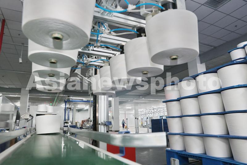 江苏南通:全国首个10万锭智慧纺纱工厂生产忙 查看组图