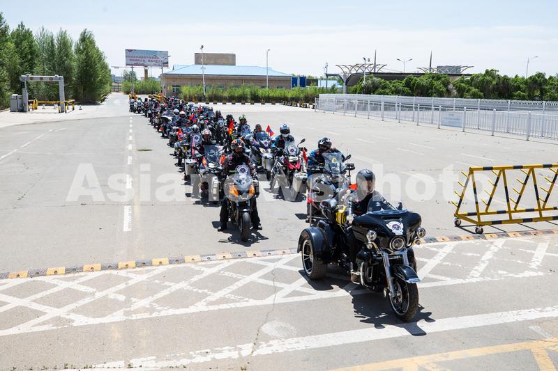 2023年6月7日,摩托车自驾旅游团从二连浩特公路口岸出境。