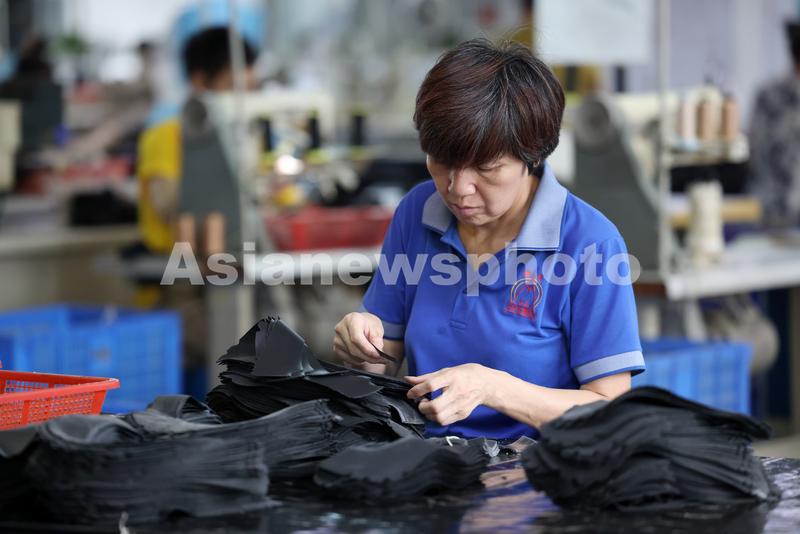 2023年6月7日,在福建省福州市仓山区一家鞋企生产线上,工人们正抓紧生产出口订单。