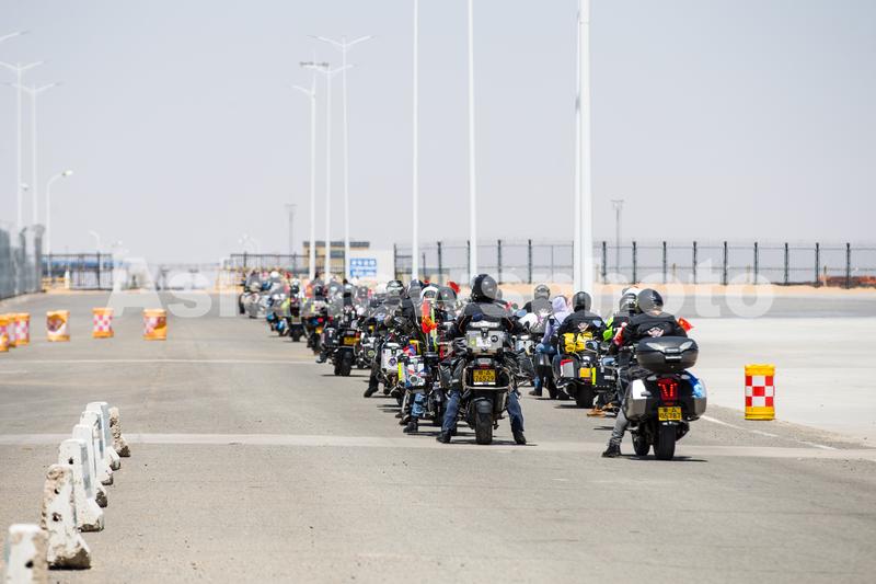 2023年6月7日,摩托车自驾旅游团从二连浩特公路口岸出境。