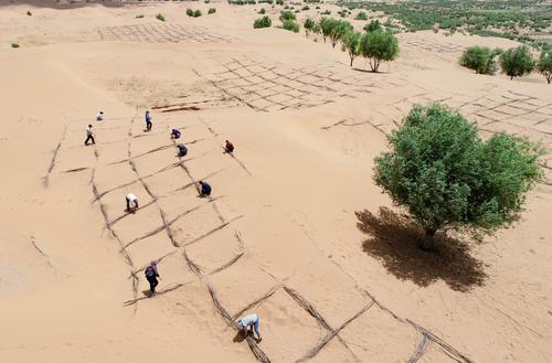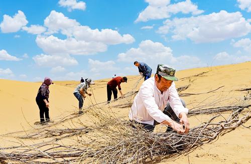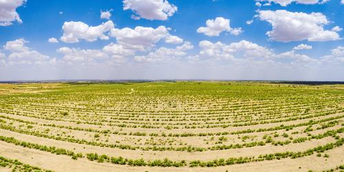 近年来,地处毛乌素沙漠腹地的内蒙古自治区鄂尔多斯市鄂托克前旗持续推进"三北"防护林工程建设,通过开展“百万亩柠条种植行动”,运用独创的渗灌柠条密植沙漠造林新技术,改进旱柳高杆造林方式,大幅度提高了沙漠造林的成活率和保存率。目前,该旗由柠条、杨柴、沙柳等植物组成的沙地绿洲达245万亩,沙化地植被得以恢复,生态系统功能持续提升,实现了从“沙进人退”到“绿进沙退”的历史性转变。
