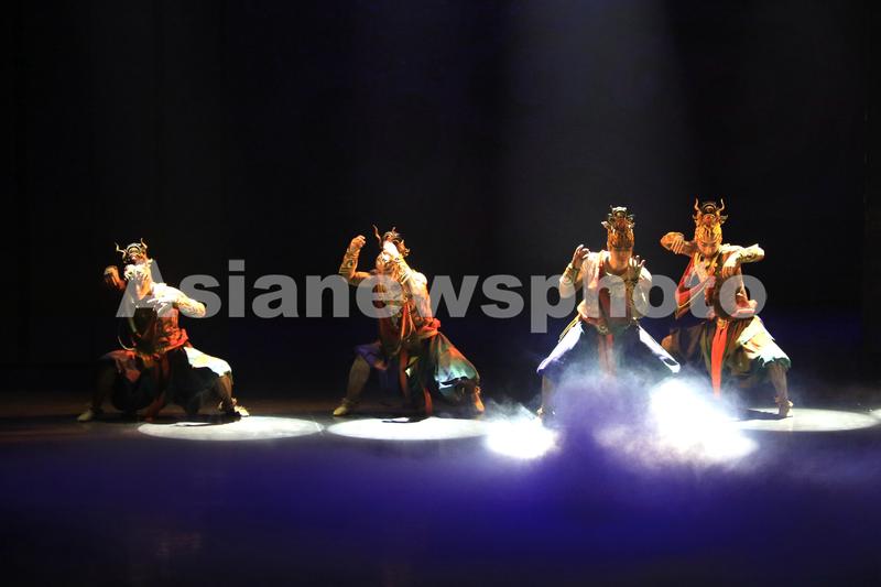 2023年6月8日晚,演员在大型洞窟式沉浸体验剧《乐动敦煌》中表演。该剧溯源敦煌文化,借助对莫高窟壁画、藏经洞古籍的深度解读梳理,活化敦煌古乐器、古乐谱研发成果,采用全息投影、3D威亚等高科技手段,以全沉浸式的呈现方式,演绎了西域少年白氏追寻艺术的动人故事。