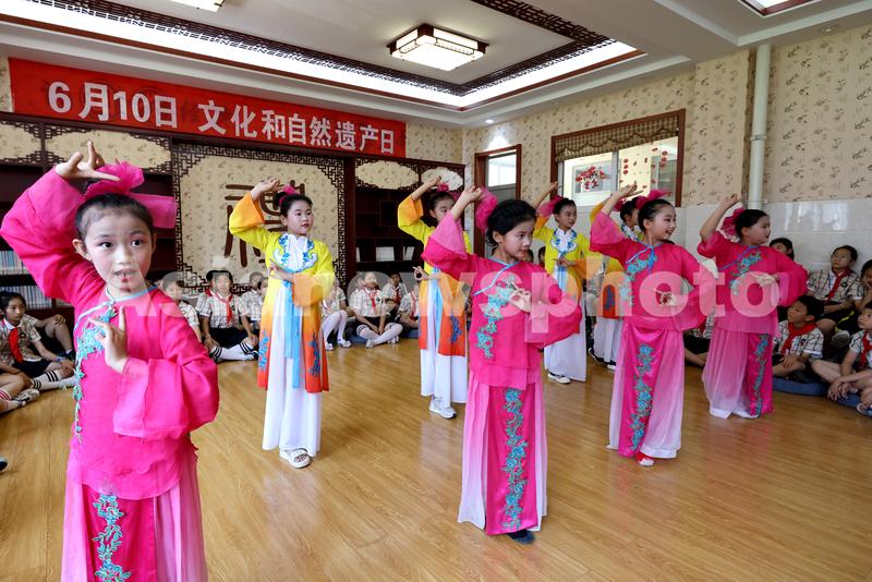 2023年6月10日是“文化和自然遗产日”,山东省枣庄市东湖小学组织爱好戏剧的学生向同学们表演了柳琴戏《石榴花开红似火》《喝面叶》等节目,让同学们近距离感受中国传统戏剧文化魅力。