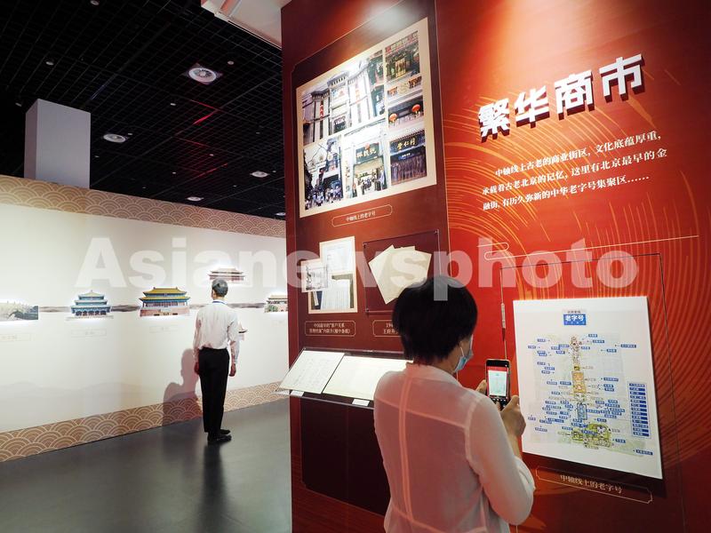 图片说明:2023年6月9日,北京市档案馆,观众在参观“最美中轴线”主题展览。