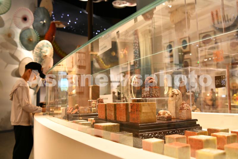 2023年 6月9日,游客在中国大运河非物质文化遗产展示馆参观。