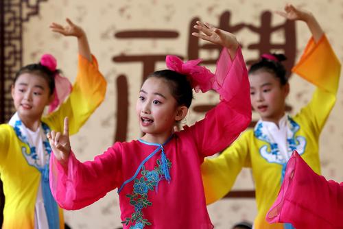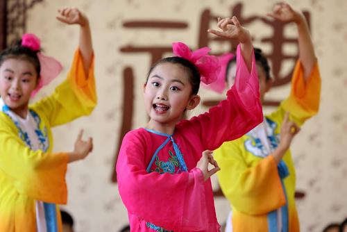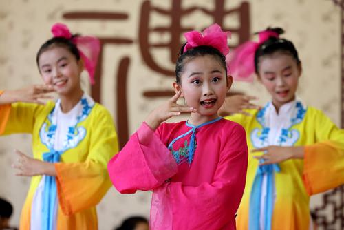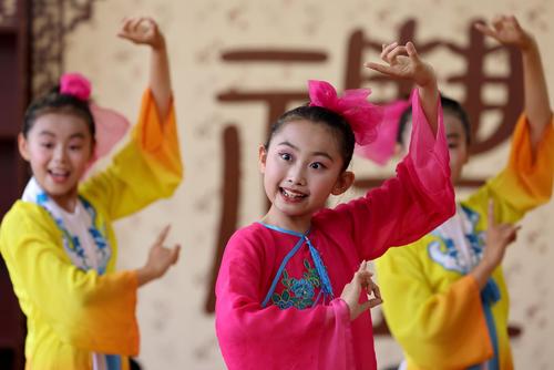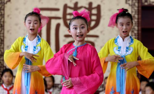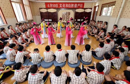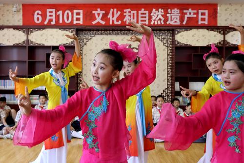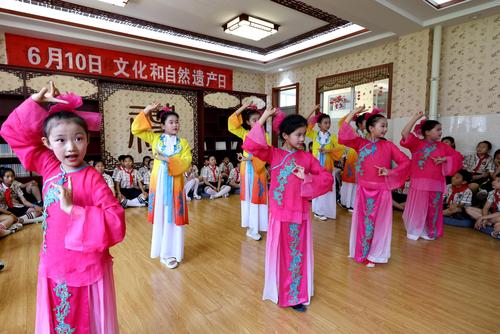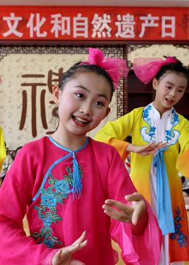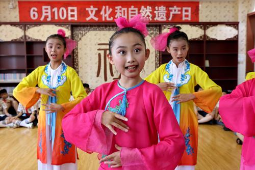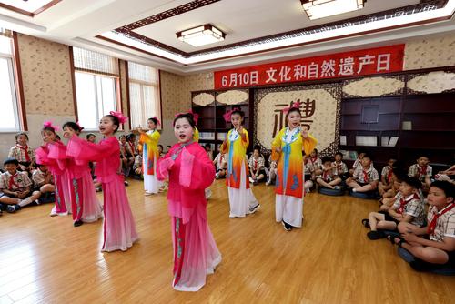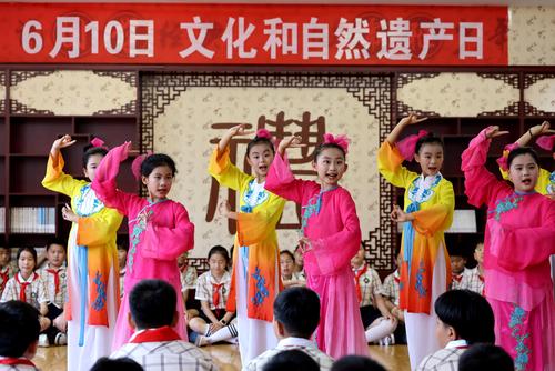 2023年6月10日是“文化和自然遗产日”,山东省枣庄市东湖小学组织爱好戏剧的学生向同学们表演了柳琴戏《石榴花开红似火》《喝面叶》等节目,让同学们近距离感受中国传统戏剧文化魅力。