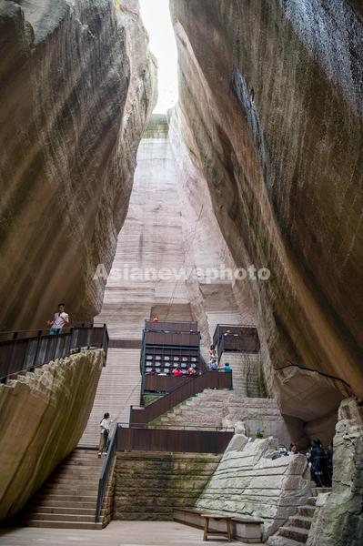 岩宕书房位于缙云县仙都景区8号岩宕,净高38米、深度约50米,是顶部完全开放的露天空间。走进书房,一条长约20余米的“之”字形石径首先映入眼帘,随之看到的是周边一排排石台,还有上面那摆放着由竹楠木制成的书架与栏杆。书房内不仅上架有精心挑选的缙云地方文献和适合大众的休闲阅览书刊,同时配备了图书自助借还机,游客可现场开通借阅功能将书借回家。借走的图书可归还至省内任意县及以上公共图书馆。
