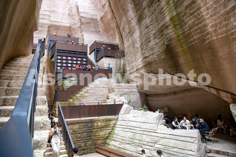 岩宕书房位于缙云县仙都景区8号岩宕,净高38米、深度约50米,是顶部完全开放的露天空间。走进书房,一条长约20余米的“之”字形石径首先映入眼帘,随之看到的是周边一排排石台,还有上面那摆放着由竹楠木制成的书架与栏杆。书房内不仅上架有精心挑选的缙云地方文献和适合大众的休闲阅览书刊,同时配备了图书自助借还机,游客可现场开通借阅功能将书借回家。借走的图书可归还至省内任意县及以上公共图书馆。