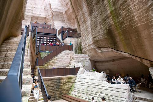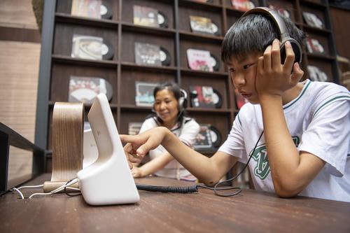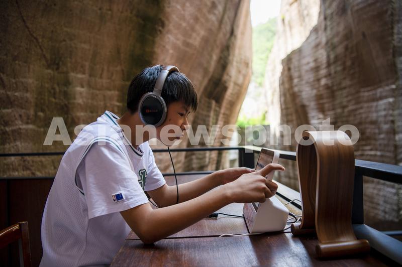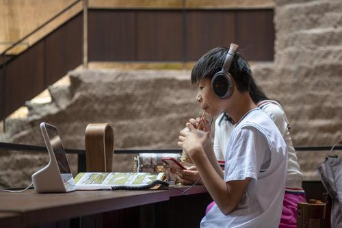 6月11日,位于浙江省丽水市缙云县仙都景区的“浙江图书馆•岩宕书房”里,游客坐在洞中书房聆听或阅读,感受别样的书香文韵。