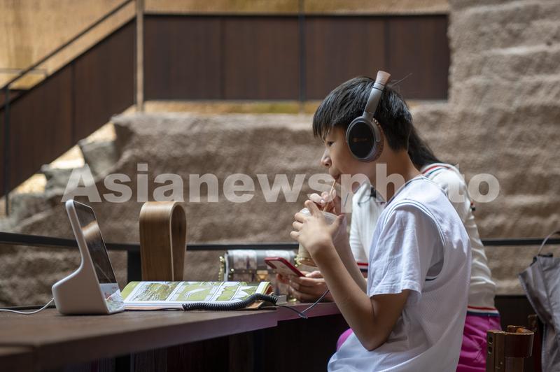 6月11日,位于浙江省丽水市缙云县仙都景区的“浙江图书馆•岩宕书房”里,游客坐在洞中书房聆听或阅读,感受别样的书香文韵。