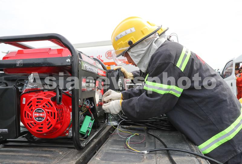 图片说明:2023年6月19日,湖嘉地区“迎亚运、保安全”高速公路突发事件应急演练现场,参加应急演练的救援人员在进行险情处置。