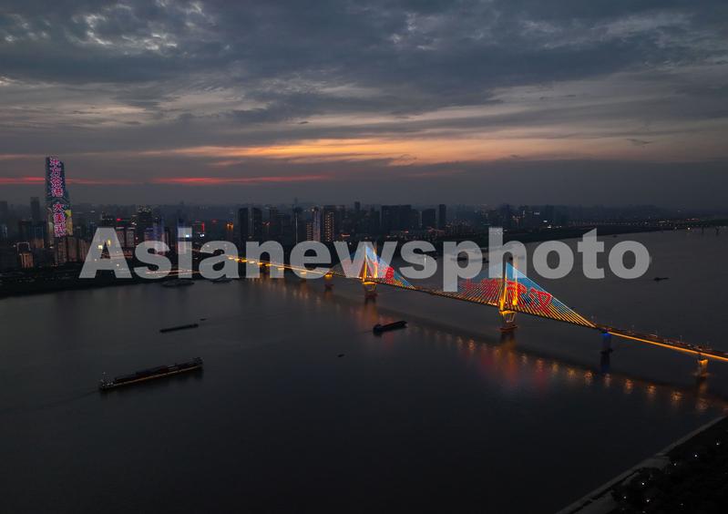 图片说明:这是6月19日傍晚在武汉市武昌区江滩拍摄的彩霞满天、绚丽多彩美景(无人机照片)。