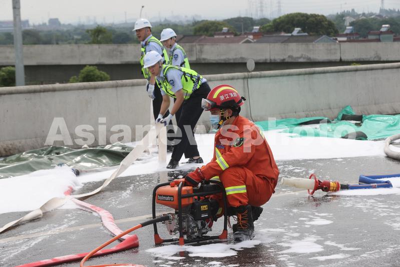 浙江湖州:高速公路突发事件应急演练 查看组图