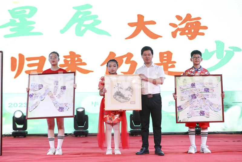 图片说明:2023年6月20日,江苏省淮安市沁春路小学师生参加毕业典礼。